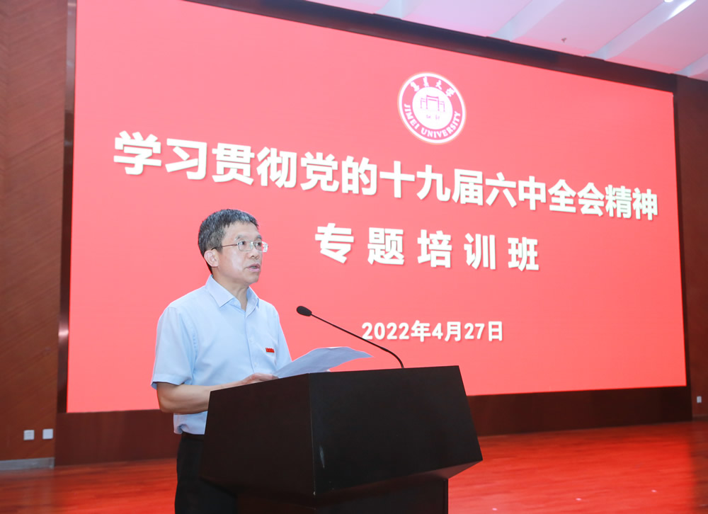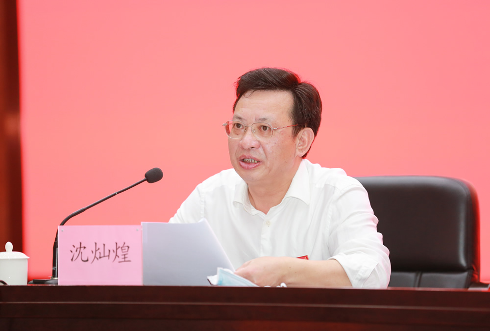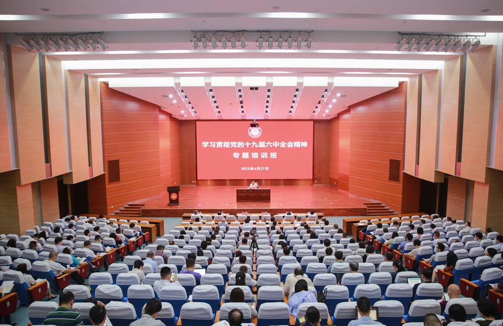 4月27日下午,我校举办了学习贯彻党的十九届六中全会精神专题培训班开班式暨首场辅导报告,校党委书记沈灿煌作开班式讲话和专题辅导报告,校党委副书记、校长李清彪主持。