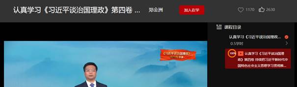 进入专栏,点击课程图标或名称进入学习页面学习。每个课程需100%学完才能算入总学时,学习时无需点击视频上方的“加入在学”按钮。