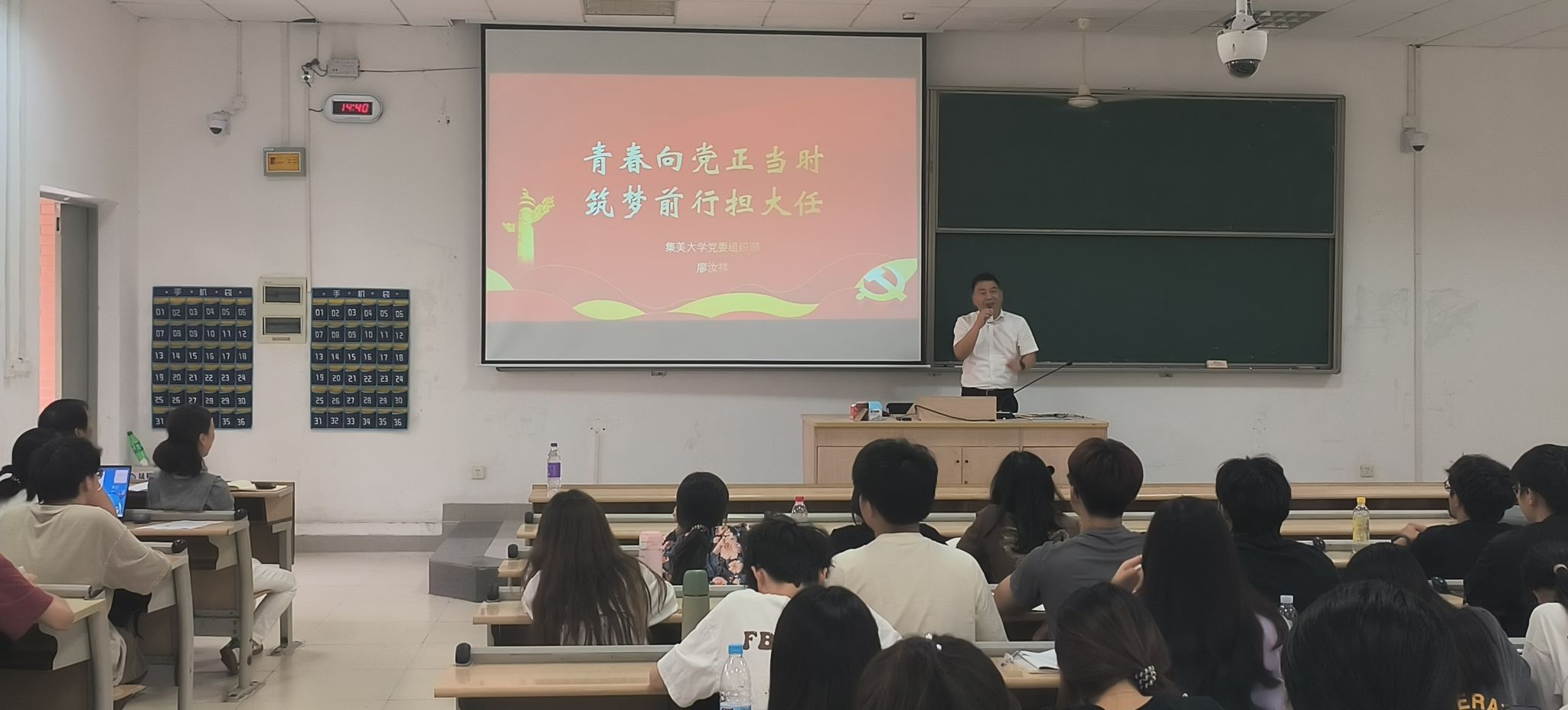随后,校党委组织部副部长廖汝祥作题为《青春向党正当时,筑梦前行担大任》专题党课,结合党史和实际案例引导同学们认真学习党的理论知识,用马克思主义理论武装头脑,将个人理想追求融入国家和民族事业中,在党旗的指引下书写青春之歌。